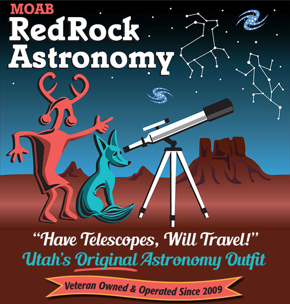 DON’T MISS your opportunity to view Moab and the surrounding area in its unique dark sky setting. Here at Moab’s REDROCK ASTRONOMY we love to share our spectacular dark skies! We now live in a modern society where many of us live in light polluted areas. As a result of this, many have never had the opportunity to view the Milky Way as it should be seen - draped across the night time sky, glittering in its beauty and majesty!